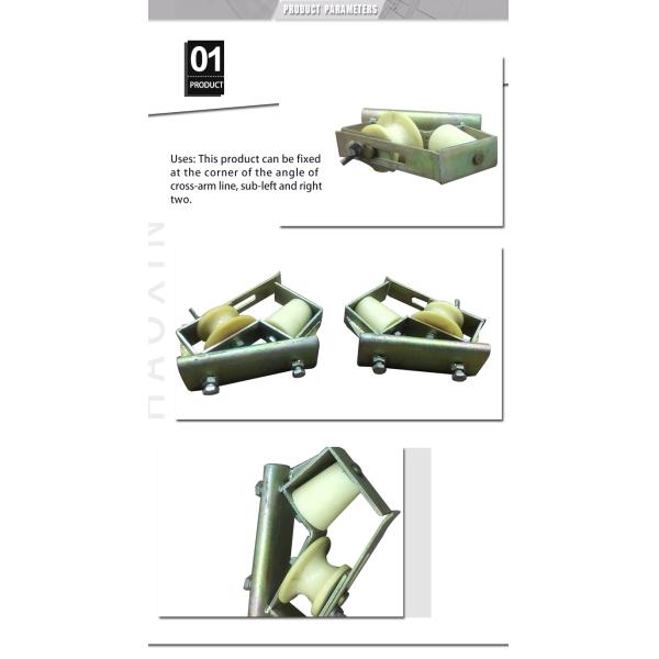 Power and communication cables are often laid in open trenches where the road and ground conditions result in the cable route having a number of curves. With the cable’s own weight and the high tensions involved the cable cannot be fed cleanly. This product can be fixed in the corner of angle steel cross pole to protect the cable from friction, divided into nylon type and Aluminum type.