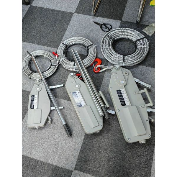 The principle function of the wire puller is that the rope passes through mechanical jaws rather than being reeled on a drum of a puller or conventional winch.
